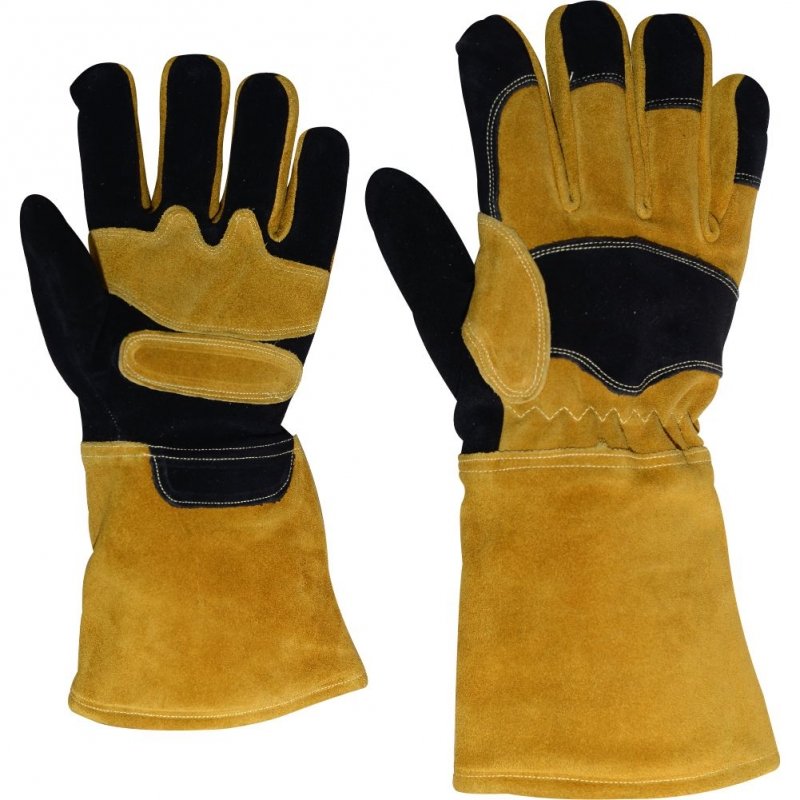 Cow split leather for Impact resistant Back cowhide leather Stitched with Kevlar® with inside wool Cow split leather for unbeatable impact resistance, Wing thumb, combination Cow split leather, Back elastic, Long yellow split Cuff, leather wrinkles at the end for extra durability.